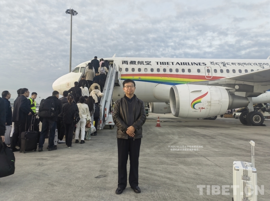 圖為作者在成都雙流機場飛往昌都邦達(dá)機場的航班前留影 作者供圖