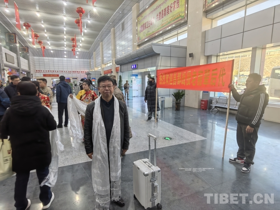 我懷著無比激動的心情走進機場大廳,看見對面不遠(yuǎn)處昌都軍分區(qū)的工作人員,身后豎立著一條橫幅寫著:“熱烈歡迎昌都戰(zhàn)役老前輩后代”,場面熱烈而隆重。