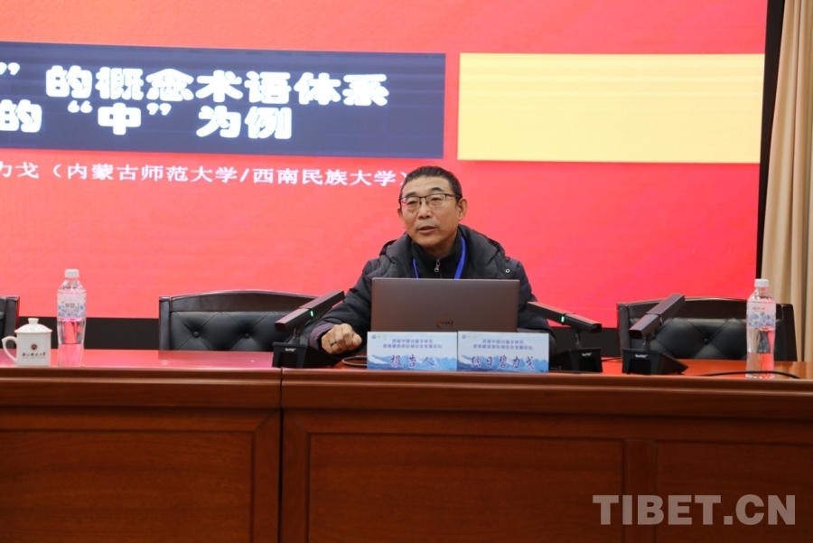 圖為內(nèi)蒙古師范大學(xué)民族學(xué)人類學(xué)學(xué)院教授納日碧力戈發(fā)言 攝影:蘭周加