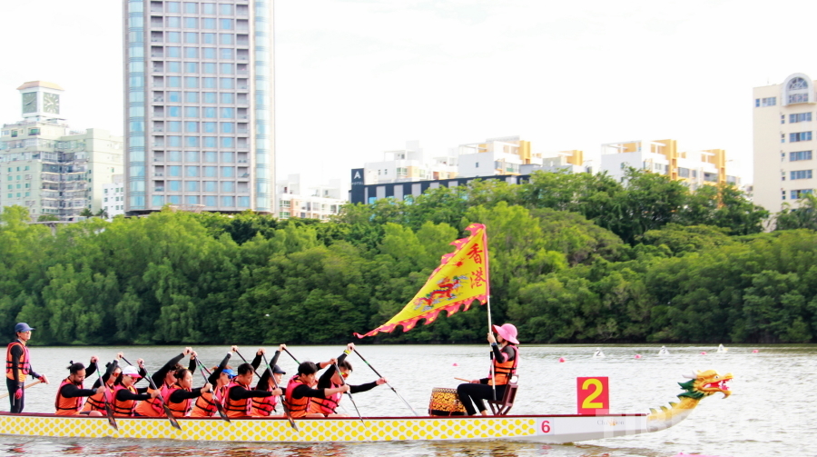 據(jù)了解,本屆運(yùn)動(dòng)會(huì)共有來自全國各地的12支男子組隊(duì)伍和8支女子組隊(duì)伍,以及男女混合組8支隊(duì)伍,共約700名運(yùn)動(dòng)員參賽。少數(shù)民族運(yùn)動(dòng)員近400名。在接下來的幾天中,大家將在三亞河切磋技藝、奮勇爭(zhēng)先,角逐龍舟項(xiàng)目共21個(gè)分項(xiàng)一等獎(jiǎng)的歸屬。其中,香港隊(duì)的龍舟一亮相就贏得了現(xiàn)場(chǎng)觀眾的熱烈掌聲。大家用掌聲與歡呼聲歡迎首次參加運(yùn)動(dòng)會(huì)龍舟項(xiàng)目的香港隊(duì)。本屆運(yùn)動(dòng)會(huì)是香港首次派出代表團(tuán)參賽。