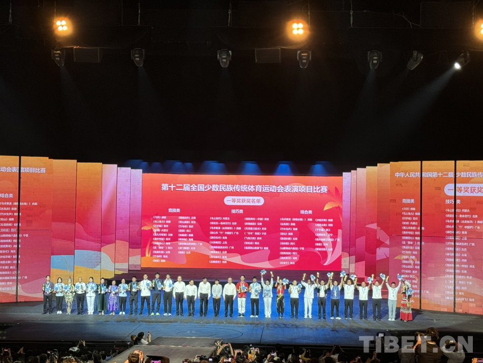 中國(guó)西藏網(wǎng)訊 11月29日晚,第十二屆全國(guó)少數(shù)民族傳統(tǒng)體育運(yùn)動(dòng)會(huì)(以下簡(jiǎn)稱“運(yùn)動(dòng)會(huì)”)表演項(xiàng)目頒獎(jiǎng)晚會(huì)在海南三亞舉行。本屆運(yùn)動(dòng)會(huì)表演項(xiàng)目共計(jì)170個(gè),共決出54個(gè)一等獎(jiǎng)。其中,西藏隊(duì)獲得3個(gè)一等獎(jiǎng)。