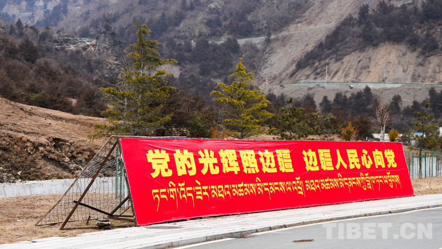 資料圖:山南市隆子縣玉麥鄉(xiāng)“黨的光輝照邊疆 邊疆人民心向黨”標(biāo)語 攝影:趙振宇