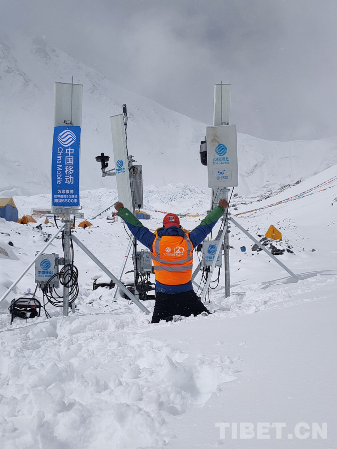 圖為2020年4月全球海拔最高的5G基站投入使用,5G信號首次“登頂”世界之巔,為珠峰高程測量全程提供通信服務(wù)。圖片由西藏自治區(qū)通信管理局提供