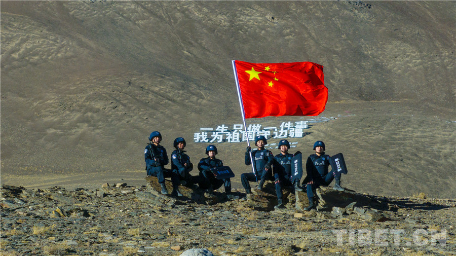 圖為涅如邊境派出所民警和“一生只做一件事 我為祖國(guó)守邊疆”大字合影