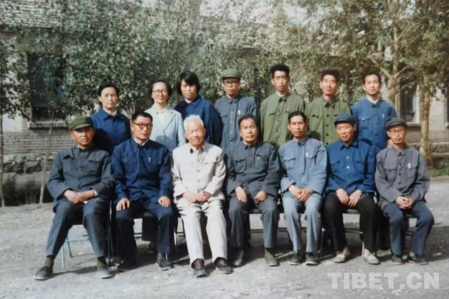 圖為1982年慕生忠將軍(前排左三)在格爾木農(nóng)場總廠視察合影 受訪者供圖