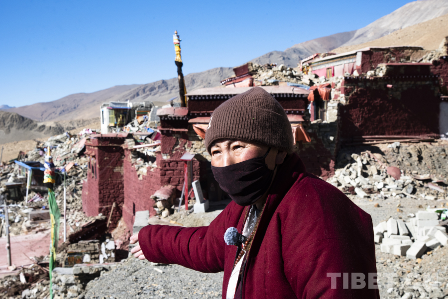 “我們的寺廟受損非常嚴(yán)重,感覺像是整座建筑都坍塌了下來,當(dāng)時被壓在下面非常害怕,還好只是受到了輕微的傷害。”位于半山腰上的宗布寺是一座有600多年歷史的尼姑寺,旦增曲宗至今回憶起當(dāng)時地震時的場景仍然感到害怕。