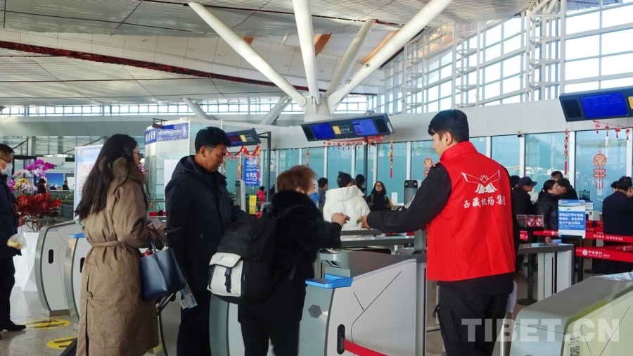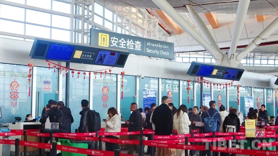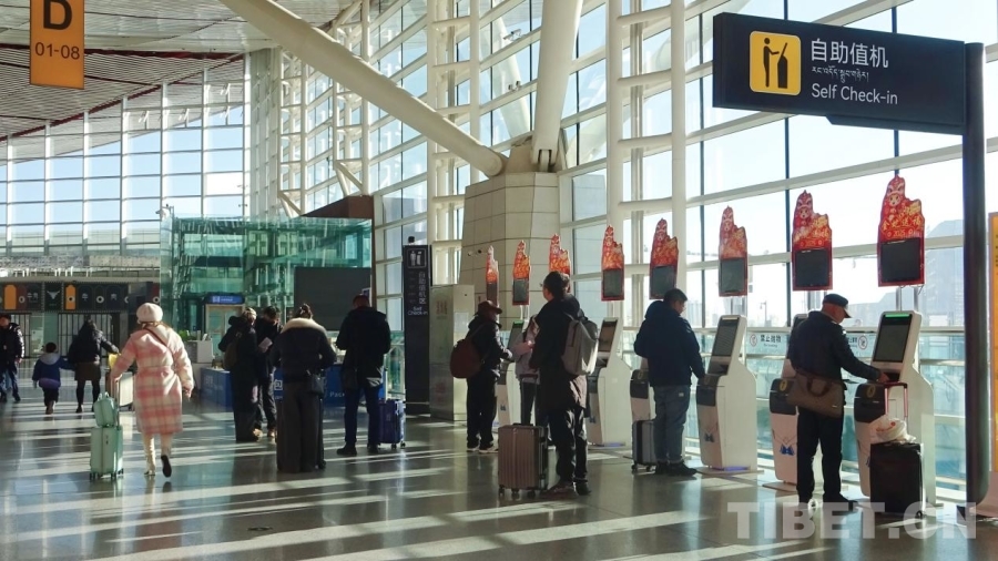 圖為春運首日的拉薩貢嘎國際機場