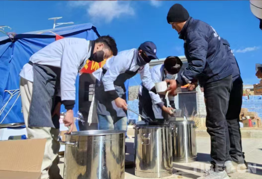 心手相連,共渡難關(guān)。地震發(fā)生后,協(xié)會常務副會長兼秘書長沈斌帶領(lǐng)西藏現(xiàn)代服務業(yè)技工學校、日喀則啟航學校、林芝虹橋?qū)W校的志愿隊攜帶價值5萬元的女性用品和磚茶等第二批援助物資奔赴災區(qū),現(xiàn)場搭建起簡易廚房,每天為受災群眾、留守老人兒童和救援隊、消防員等抗災一線的500余人提供餐食。同時,志愿團隊還在附近村莊積極開展愛心捐贈活動,將企業(yè)和愛心人士捐贈的棉被、衣物、食品等物資逐一分發(fā)到災區(qū)群眾手中,用實際行動為災區(qū)群眾送去了西藏烹飪餐飲飯店從業(yè)人員的愛與溫暖。