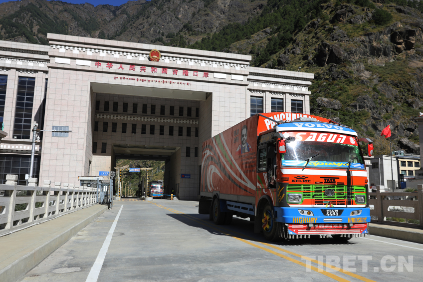 資料圖:尼泊爾貨車從吉隆口岸國門經(jīng)過 攝影:肖富貴