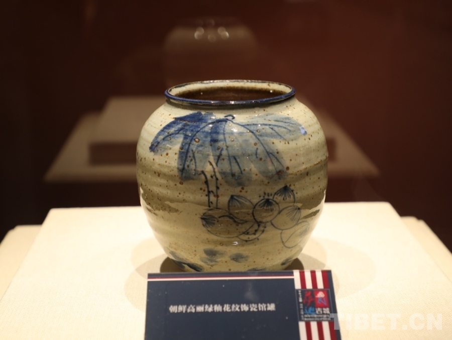 圖為宋高麗瓷青花荷塘花紋罐(復(fù)制品) 攝影:王茜