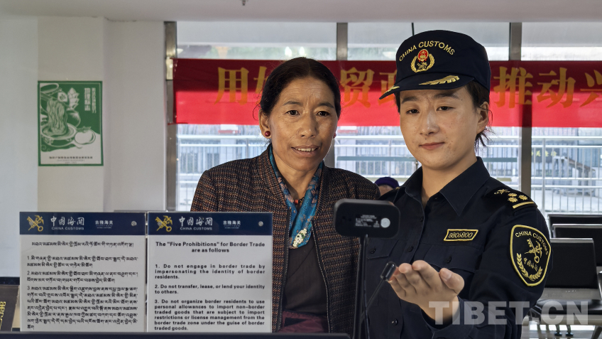 圖為海關(guān)工作人員使用“智能海關(guān)”相關(guān)系統(tǒng)對(duì)出入境人員身份信息進(jìn)行核對(duì) 圖片由拉薩海關(guān)提供