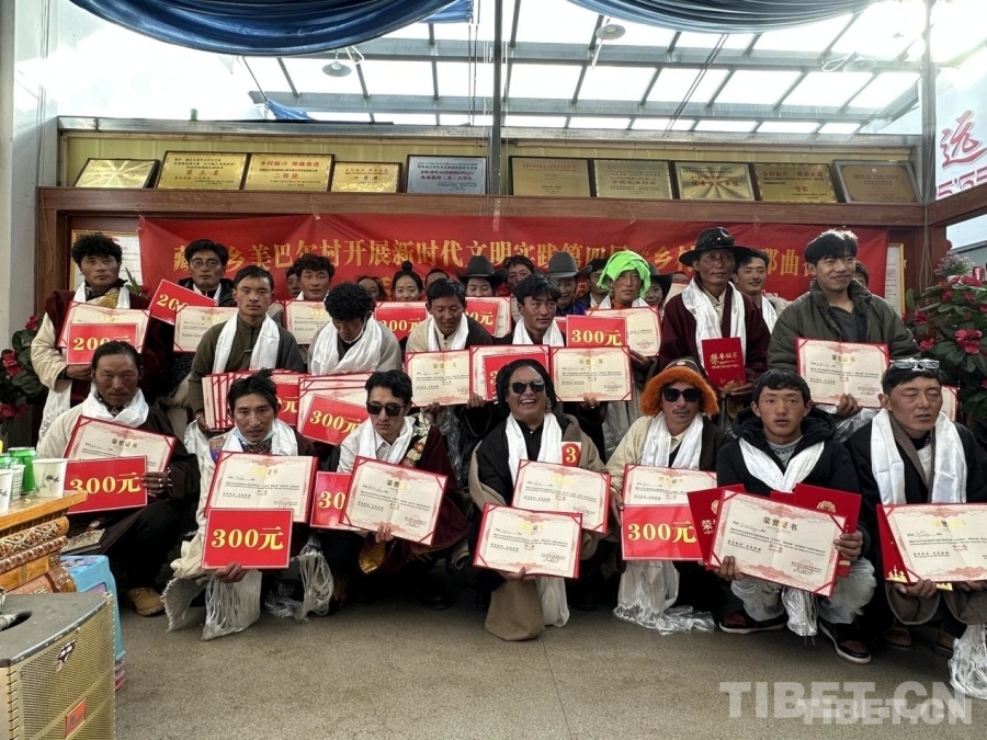 圖為藏比鄉(xiāng)美巴爾村比賽結(jié)束后,獲獎者合影留念