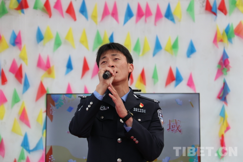 圖為錯(cuò)那邊境檢查站民警為晚會獻(xiàn)上藏語歌曲《囊謙》