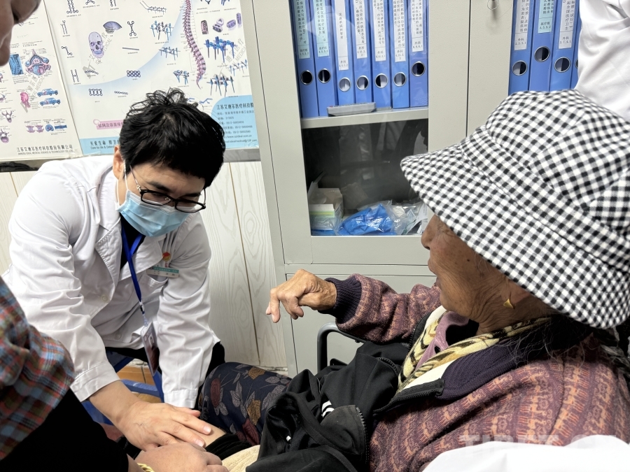 圖為王劍醫(yī)生為患者檢查身體 攝影:張亞男