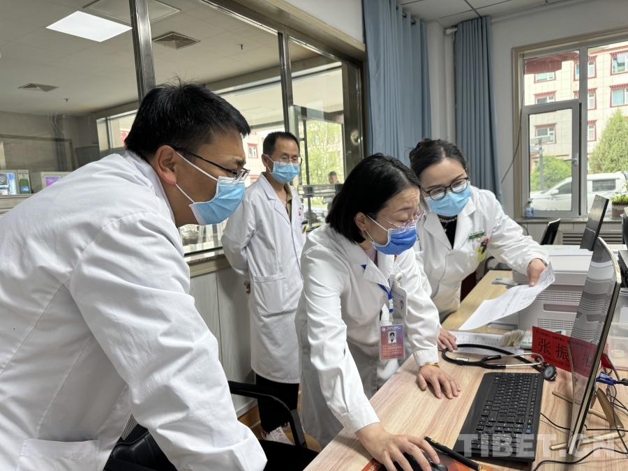 圖為程穎醫(yī)生和迭部縣人民醫(yī)院醫(yī)生溝通患者病情 攝影:張亞男