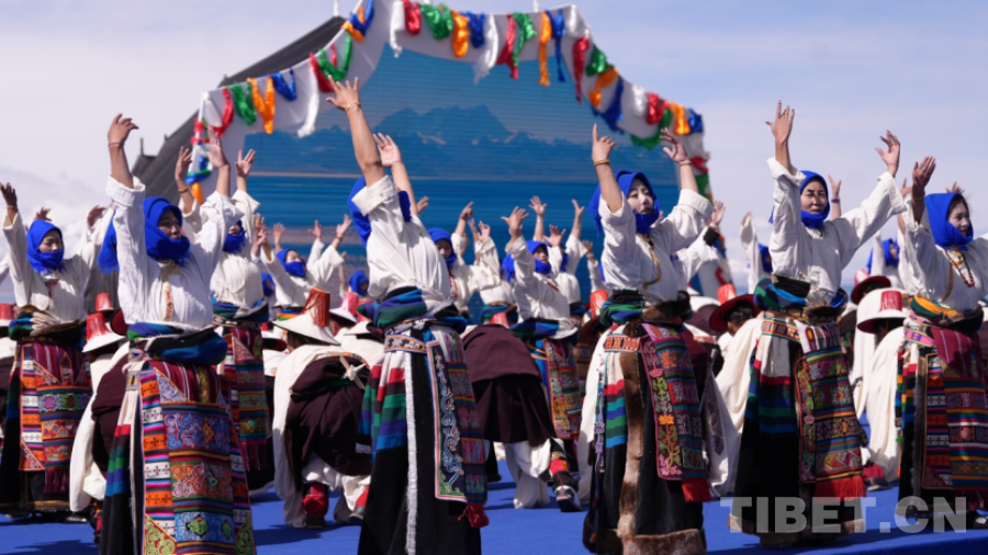 本次納木錯(cuò)開湖日以歌舞為媒,盡情抒發(fā)對大自然的禮贊,《牧歌贊靈》《湖牧畫意》《圣湖戀曲》三章文藝表演將整個(gè)活動推向高潮。身披牦牛氆氌的牧人身影、踏雪而歌的少女形象、象征愛情與信仰的傳說,交織成一幅幅詩意畫卷,深情演繹人與自然、信仰與愛情的動人篇章。