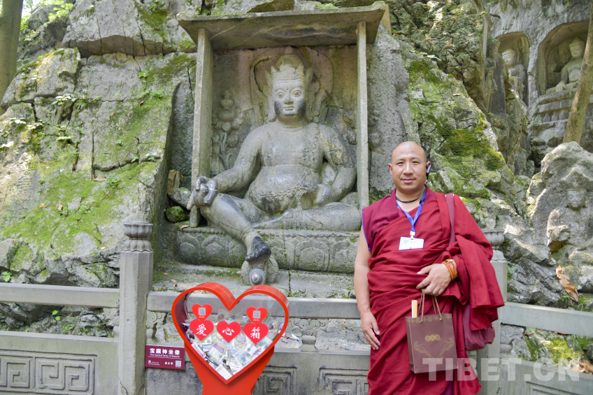 圖為西藏佛學(xué)院學(xué)員在飛來(lái)峰元代造像前留影 攝影:趙振宇