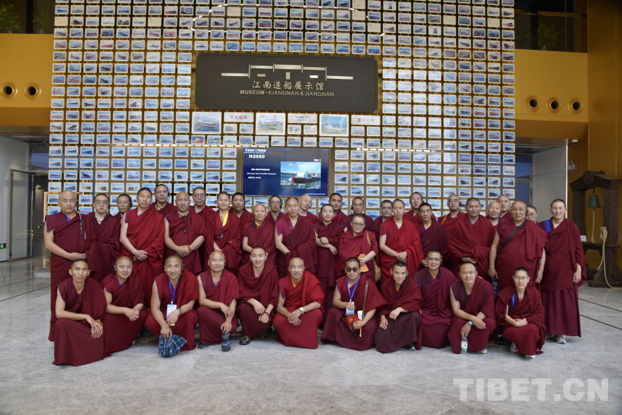 圖為西藏佛學(xué)院師生在上海江南造船廠合影,了解“中國(guó)第一船廠”到“航母搖籃”的發(fā)展歷史 攝影:趙振宇