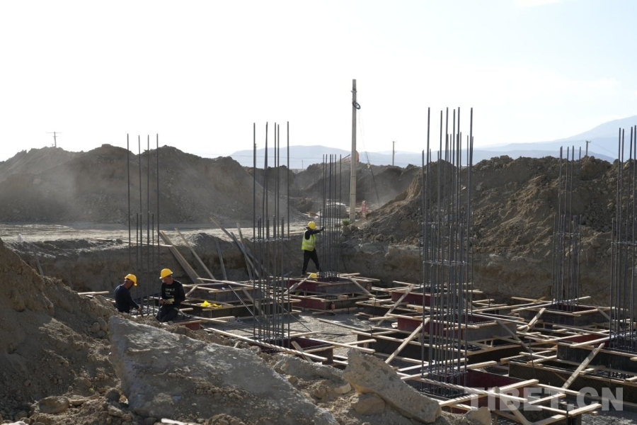 在雜村,一座座安置板房間,婦女們圍坐一起編織氆氌,孩子們玩鬧嬉戲,時有工作人員入戶進(jìn)行安全排查、普法宣傳,生活一如往常平靜安寧。而在距離安置點不遠(yuǎn)處的工地上,卻呈現(xiàn)出一片繁忙的景象——運輸車穿梭其間,機(jī)器轟鳴,工人忙著將箍筋固定在地基中,雜村重建工作正有序而迅速地推進(jìn)著。