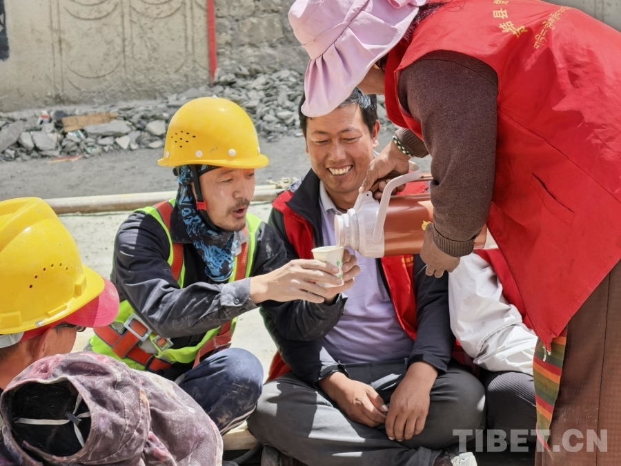 負(fù)責(zé)白瑪村重建的四標(biāo)段施工隊,隊員來自五湖四海。來自山西五臺山的建筑工人張計平喝完酥油茶感慨道:“這茶咸中帶甜,干完活喝下去特別解乏提勁!老鄉(xiāng)們太熱情淳樸了,讓我們干活都更有勁兒!”一旁的安全員陳灝吃著西瓜補充道:“我們一定爭取早日讓鄉(xiāng)親們住進(jìn)安全舒適的新家!”