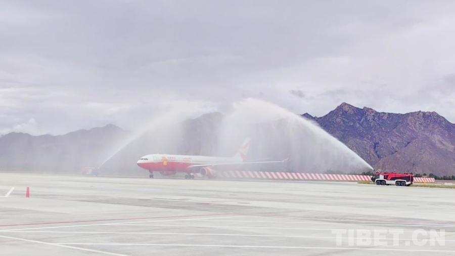11時(shí)30分,航班平穩(wěn)降落在拉薩貢嘎國際機(jī)場。飛機(jī)在跑道上緩緩滑行,穿過象征民航最高禮儀的“水門”,飛舞的水花仿佛在為祥鵬航空首條進(jìn)藏航線安全運(yùn)營十周年而歡呼喝彩。