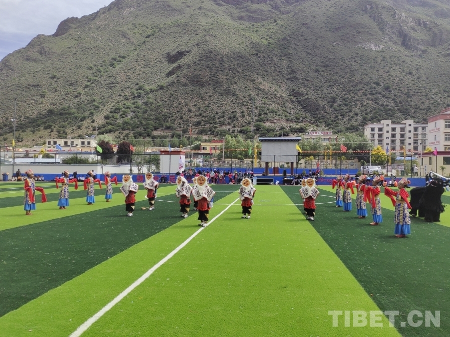 圖為西藏洛隆縣達(dá)龍鄉(xiāng)第二屆中遠(yuǎn)海運(yùn)鄉(xiāng)村足球聯(lián)賽“吉祥杯”開幕式上的舞蹈表演