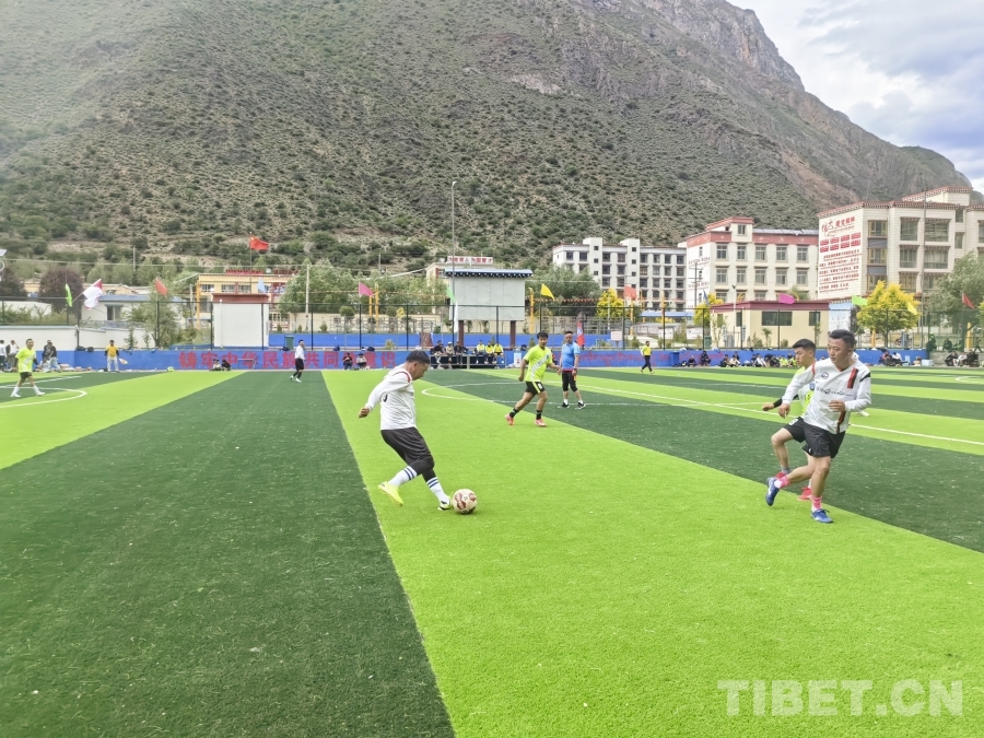 圖為西藏洛隆縣達(dá)龍鄉(xiāng)第二屆中遠(yuǎn)海運(yùn)鄉(xiāng)村足球聯(lián)賽“吉祥杯”比賽現(xiàn)場(chǎng)