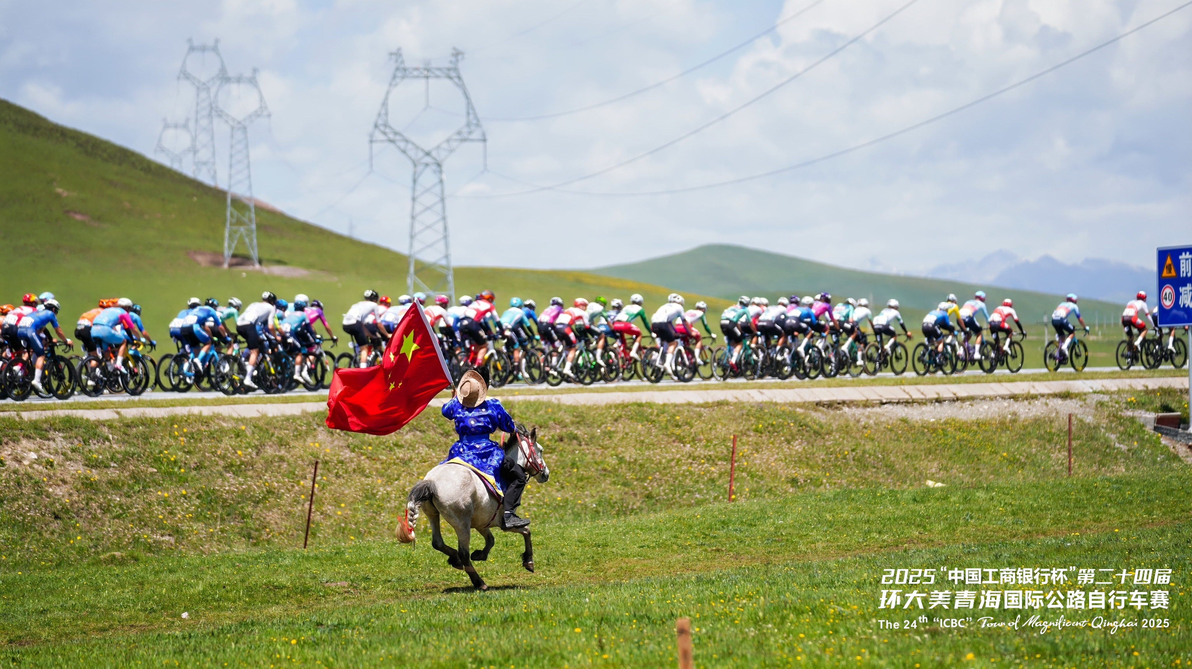 在青海湖畔,牧民們手擎國(guó)旗策馬飛馳,與選手們并肩競(jìng)逐。這一場(chǎng)景也致敬了全球頂尖自行車賽事環(huán)法自行車賽中自行車與馬匹同行的經(jīng)典畫面——騎馬承載著人類悠久的出行記憶,自行車則象征著現(xiàn)代的綠色出行理念,此刻,在青海湖畔,傳統(tǒng)與現(xiàn)代完美交融,共同譜寫著人與自然和諧共處的動(dòng)人篇章。