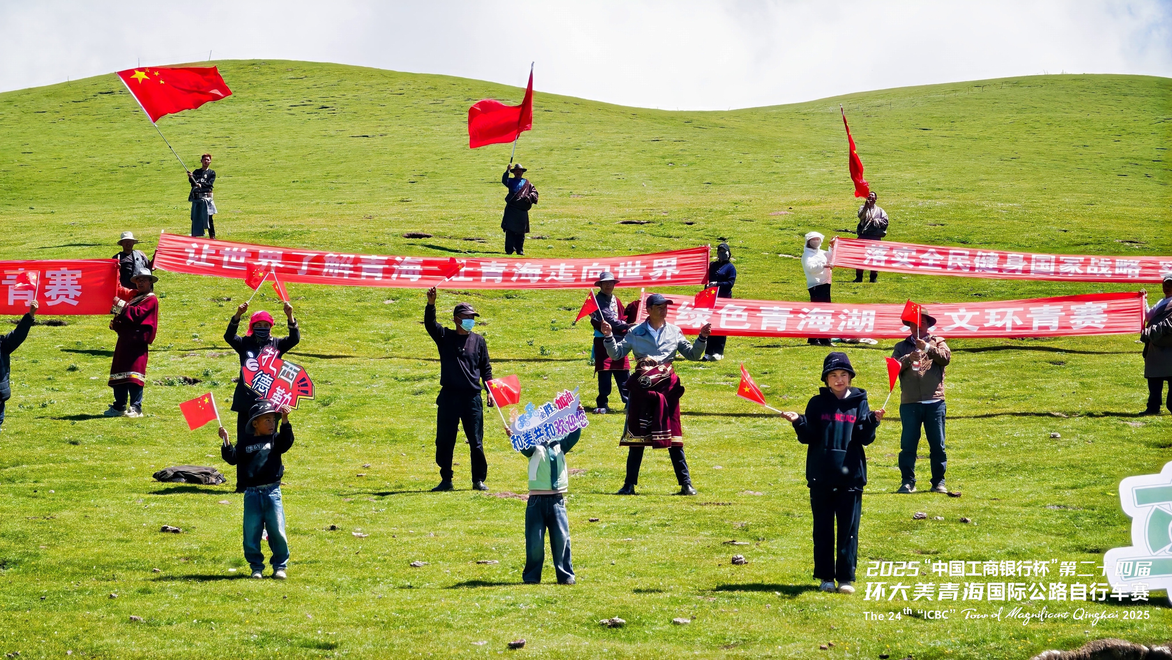 圖為環(huán)青賽期間,沿途的群眾、小朋友們手持“讓世界了解青海 讓青海走向世界”“綠色青海湖 人文環(huán)青賽”等標(biāo)語(yǔ)的橫幅,用燦爛的笑容和真摯的歡呼,向世界展示著青海人民的開放與好客,飄揚(yáng)的橫幅與歡呼聲交織,傳遞出這片土地對(duì)八方來(lái)客最熱烈的歡迎。