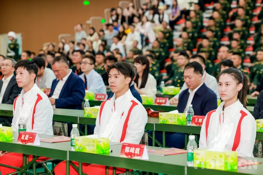 宣講中,黃雨婷、陳清晨和馬龍帶著賽場內(nèi)外的赤誠與感悟,結(jié)合各自成長軌跡與拼搏故事,同官兵們真誠交流、共鳴心聲。他們聊起訓(xùn)練場上與傷病斗爭的汗水、突破瓶頸時(shí)的堅(jiān)持,話及賽場決勝瞬間的緊張與突破自我的暢快,更分享了身披國旗時(shí)的初心與為國爭光的榮光?;?dòng)環(huán)節(jié)里,官兵們踴躍提問,從“如何和隊(duì)友保持默契”到“怎樣保持冷靜”,奧運(yùn)冠軍們一一作答,現(xiàn)場氣氛熱烈。潘展樂、張雨霏也特意通過視頻向官兵們致以誠摯問候,鼓勵(lì)大家在各自的賽場上奮勇拼搏,綻放最好的自己。