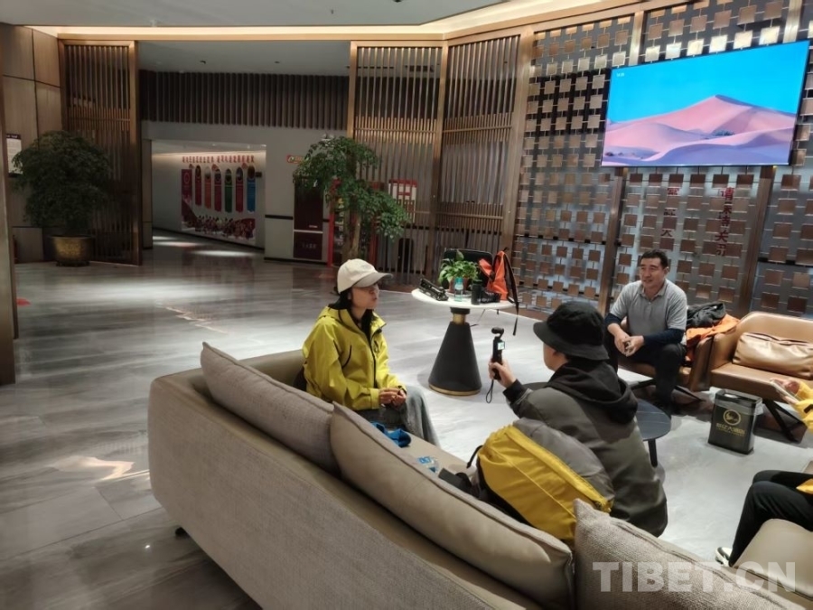 圖為中國西藏網(wǎng)“和美那曲”報道組采訪廣東自駕游客 攝影:王東