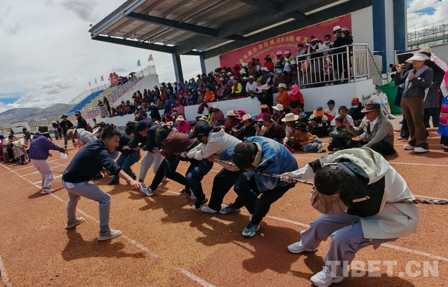 文藝演出落幕,文體活動接棒升溫。100米、200米賽道上,選手們?nèi)珉x弦之箭,奔跑中揚(yáng)起的塵土里;拔河繩兩端,隊員們腳蹬大地、身向后仰,加油的號子聲震得地上的石子都在跳;抱沙袋、押加項目中,選手們咬緊牙關(guān)、全力拼搏,圍觀群眾的吶喊助威聲浪一波高過一波;穿藏服拌糌粑環(huán)節(jié),大家整理衣襟、系緊腰帶,青稞粉與礦泉水在手中交融,香氣里飄著“共話家常”的溫情……每項活動都是一次“心與心的對話”,讓團(tuán)結(jié)的種子在互動中生根發(fā)芽。