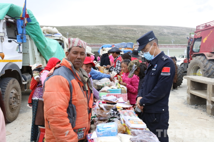 圖為移民管理警察在拉孜拉邊貿(mào)交易現(xiàn)場執(zhí)勤