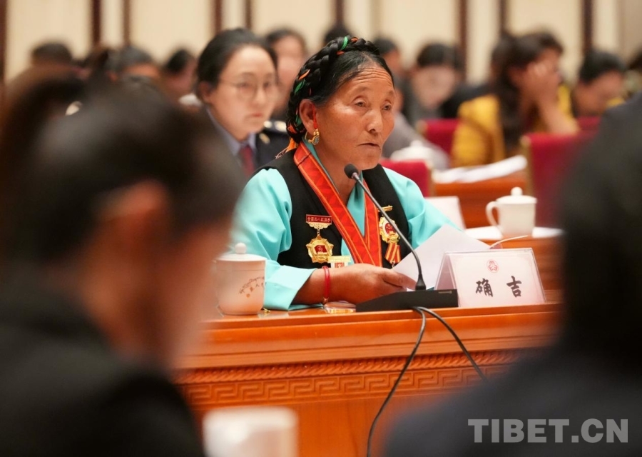 西藏日喀則市崗巴縣昌龍鄉(xiāng)乃村原村委會主任確吉講述了自己40年來發(fā)揚愛國擁軍優(yōu)良傳統(tǒng)的經(jīng)歷。2017年深秋,部隊運送物資到前沿陣地時突遇暴風雪被困,確吉組織群眾鏟雪開路,經(jīng)過20多小時努力完成物資運送任務(wù)。她的母親拉吉是“愛國擁軍模范”,臨終前叮囑她傳承擁軍傳統(tǒng),確吉也帶著女兒一起走在擁軍路上,傳承“守邊即守家,國安家才安”的家風家訓。她表示,將帶領(lǐng)村民在國家固邊興邊富民行動中發(fā)揮作用。