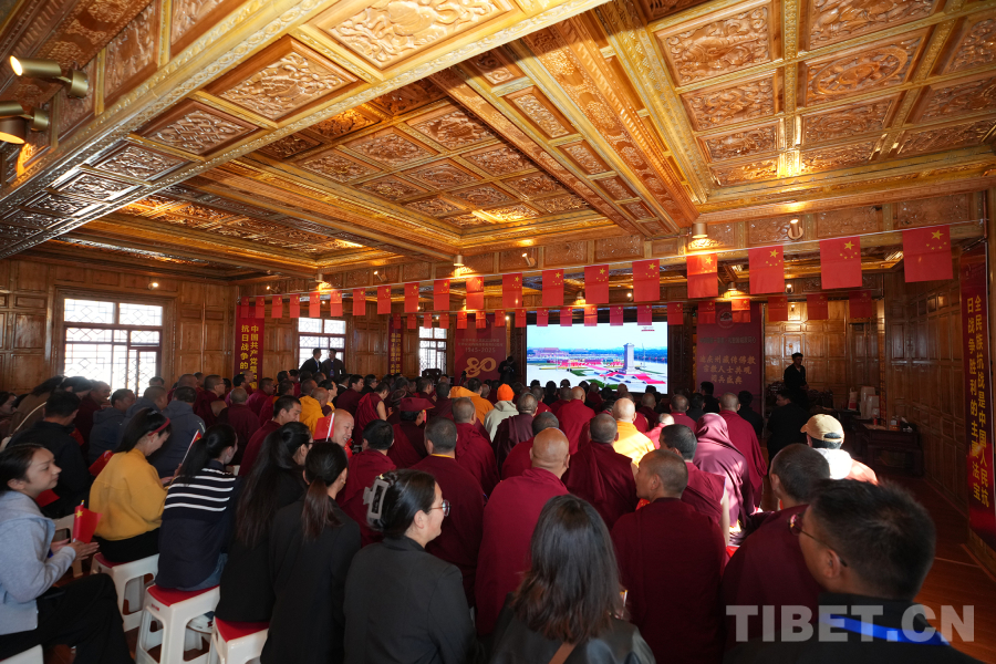 中國(guó)西藏網(wǎng)訊 9月3日上午,紀(jì)念中國(guó)人民抗日戰(zhàn)爭(zhēng)暨世界反法西斯戰(zhàn)爭(zhēng)勝利80周年大會(huì)在北京天安門廣場(chǎng)隆重舉行,以盛大閱兵儀式,同世界人民一道紀(jì)念這個(gè)偉大的日子,共同開創(chuàng)更加光明的未來(lái)。同一時(shí)刻,在云南省迪慶藏族自治州香格里拉市松贊林寺,130余名我國(guó)宗教界人士觀看大會(huì)直播,共同見證這一歷史性時(shí)刻,感受新時(shí)代中國(guó)國(guó)防力量,激蕩愛國(guó)愛教情懷。