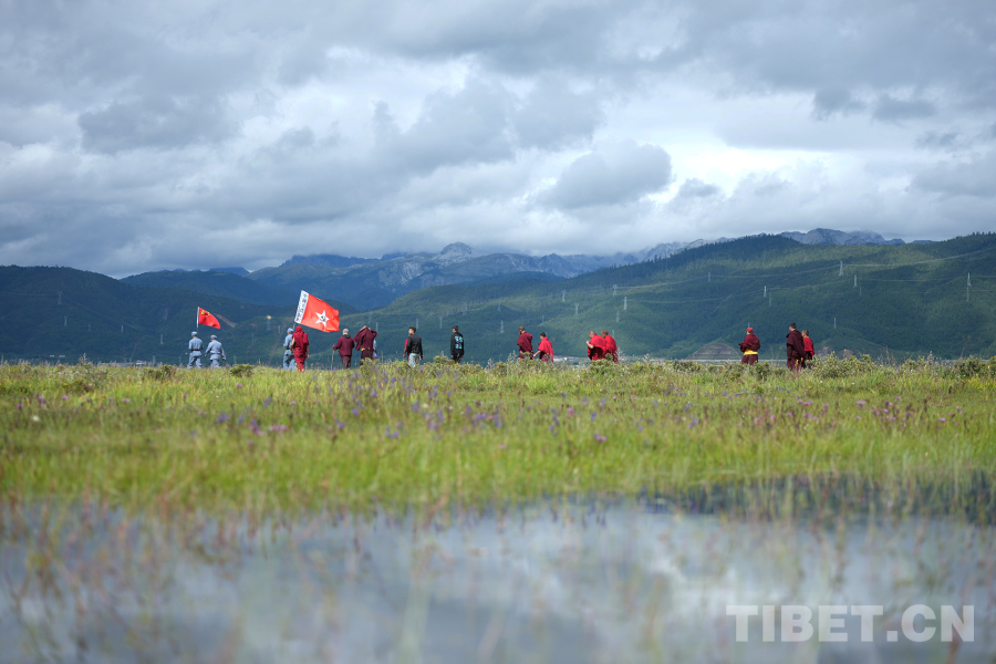 圖為“重走長(zhǎng)征路”活動(dòng)中,迪慶州我國(guó)宗教界人士沿著先輩足跡行進(jìn)噶丹·松贊林寺供圖