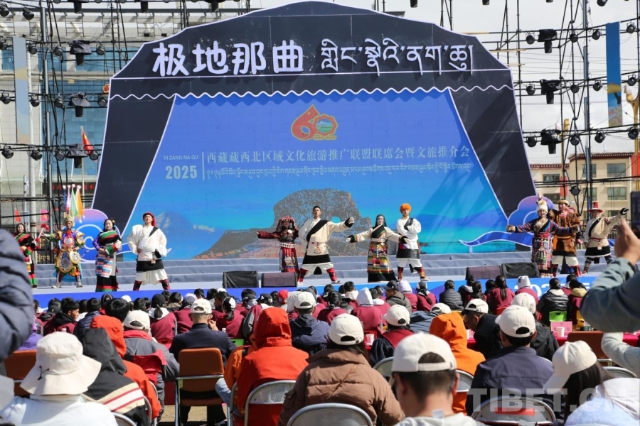 活動(dòng)開始前,現(xiàn)場播放了昌都、那曲、阿里及相關(guān)縣(區(qū))的文化旅游宣傳片。昌都市與那曲市先后登臺推介本地文化旅游資源,昌都重點(diǎn)展示了茶馬古道、三江并流以及芒康鹽井等獨(dú)特資源;那曲則聚焦于羌塘草原、納木錯(cuò)圣象天門、薩普景區(qū)以及格薩爾史詩等核心資源,彰顯了“極地那曲”的無限魅力。索縣、申扎、尼瑪三縣從微觀視角推介縣域特色——索縣的贊丹雪、穹雄溝、申扎縣的色林錯(cuò)、尼瑪縣的當(dāng)惹雍錯(cuò)等人文風(fēng)光,進(jìn)一步豐富了藏西北文旅的內(nèi)涵。舞蹈《古韻》,《非遺服飾秀》、歌曲《年輕的城市》《請到那曲走一走》一次次將聯(lián)席會(huì)推向高潮。