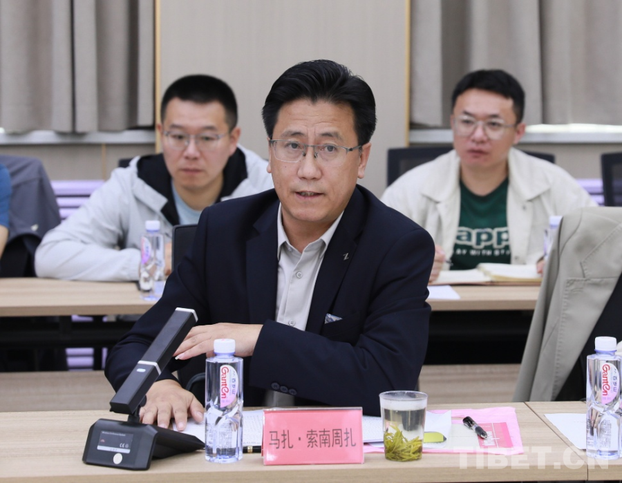 圖為馬扎·索南周扎在研討會上做主題發(fā)言 攝影:劉莉