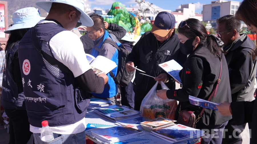 圖為活動現(xiàn)場向市民和游客發(fā)放拉薩文旅宣傳資料