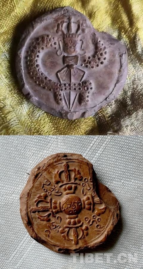圖為1935年九世班禪命米瑪才仁返回香日德時(shí)贈予的班欽夏擦(意為親手制作的擦擦),由扎什倫布寺特制,現(xiàn)留存稀少