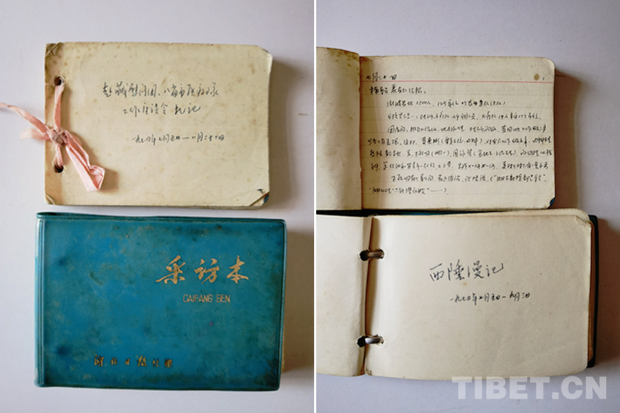 梳理完這些親手拍的片子,丁先生突然想起,他當年赴藏寫有日記,還保存著,我大為驚訝,本能地意識到這是極珍貴的檔案資料。先生又翻書柜,找出個小本子,上面依時間順序,密密麻麻地記載著湖北團隊幾乎每天的活動。真是難得一見的寶貝呀!經(jīng)先生同意,筆者對日記逐頁拍照,帶回家研究。