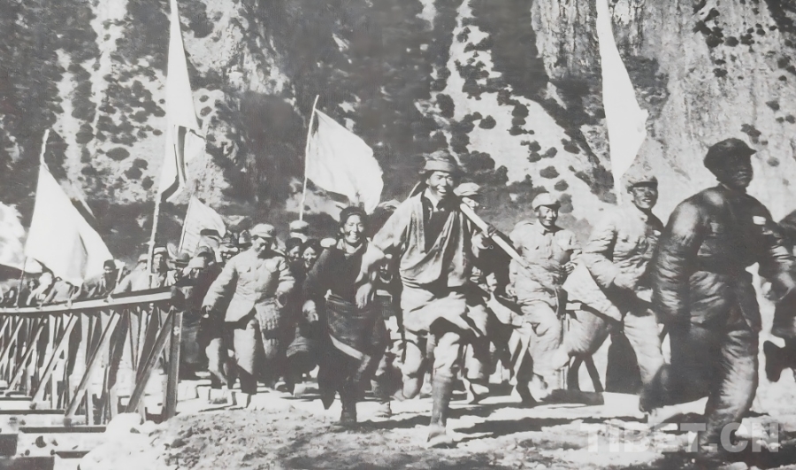 1951年10月,人民解放軍正式進(jìn)駐拉薩,隨著各項(xiàng)工作穩(wěn)步推進(jìn),局勢趨于穩(wěn)定。西藏工委、西藏軍區(qū)同西藏地方政府協(xié)商加快修建康藏公路的問題,于1952年在拉薩成立第一工程局(后改為第一施工局),1953年1月筑路委員會成立,下設(shè)西線筑路指揮部。進(jìn)藏部隊(duì)、地方干部與各族民工(西線筑路大軍)從拉薩出發(fā),先打通拉薩河南岸至墨竹工卡的山路,再頂著米拉山口的暴風(fēng)雪鋪筑路基,一點(diǎn)點(diǎn)將公路向著巴河的方向延伸。兩支筑路大軍隔著雪山峽谷,卻以同樣的堅(jiān)韌,在高原上刻下屬于中國人的英勇無畏!