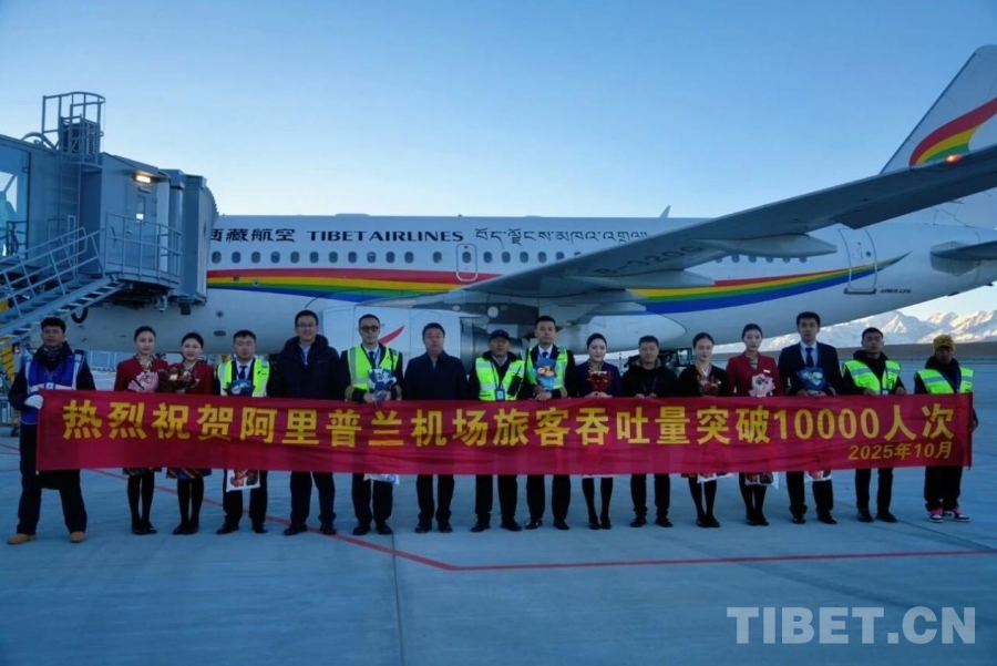 圖為阿里普蘭機(jī)場2025年年旅客吞吐量破萬合影