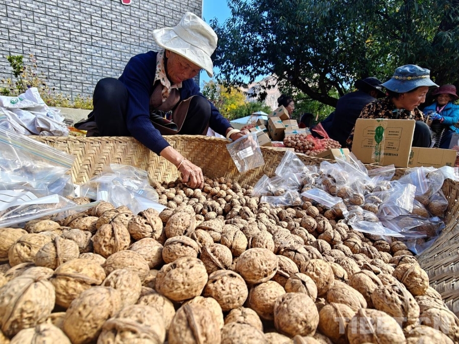 中國(guó)西藏網(wǎng)訊 10月21日,在西藏山南市加查縣安繞鎮(zhèn)拉崗村的千年核桃林內(nèi),村民們正忙碌地將今秋采收的核桃打包,準(zhǔn)備通過電商平臺(tái)發(fā)往全國(guó)各地的顧客手中。