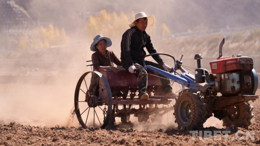 中國西藏網(wǎng)訊 十月的西藏山南市加查縣,雅魯藏布江畔秋意正濃。10月21日,記者在冷達鄉(xiāng)嘎瑪吉塘村看到,田間地頭處處是繁忙的冬播景象:拖拉機轟鳴著往來穿梭,鐵犁翻起濕潤的新土,泥土清香撲面而來;村民們手執(zhí)傳統(tǒng)農(nóng)具,沿著整齊的田壟緩緩前行,彎腰播撒下一粒粒飽滿的冬小麥種子。據(jù)當?shù)卮迕窠榻B,嘎瑪吉塘村有著悠久的冬播傳統(tǒng)。每年10月下旬,當?shù)乇銜_啟冬播工作,主要種植冬小麥。這些種子在土地中越冬,于來年7月迎來豐收。緊接著在8月,村民們又會馬不停蹄地開始新一輪播種,主要為牲畜種植飼料,形成了一年兩熟、土地不休的良性循環(huán)農(nóng)業(yè)生產(chǎn)模式。(中國西藏網(wǎng) 記者/次旦拉姆)