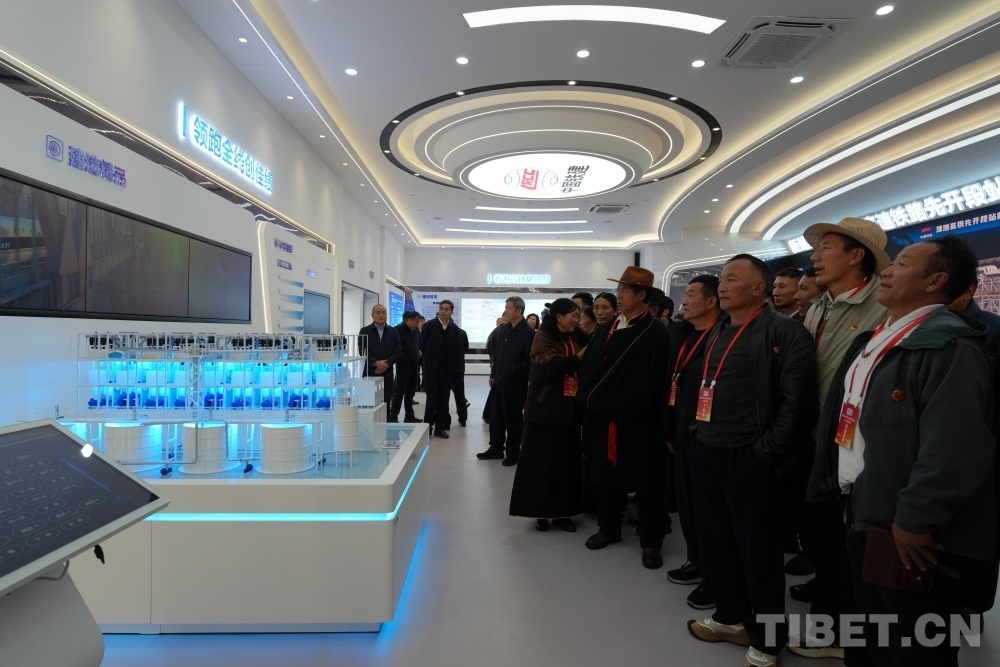 圖為西藏基層干部學(xué)習(xí)參觀團(tuán)參觀中鐵十四局津?yàn)H高鐵先開段站前工程相關(guān)展覽 攝影:王茜