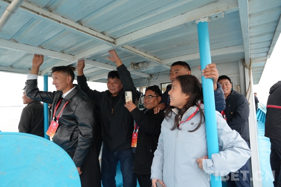 圖為西藏基層干部學(xué)習(xí)參觀團(tuán)成員在甲板上觀看捕魚 攝影:王茜