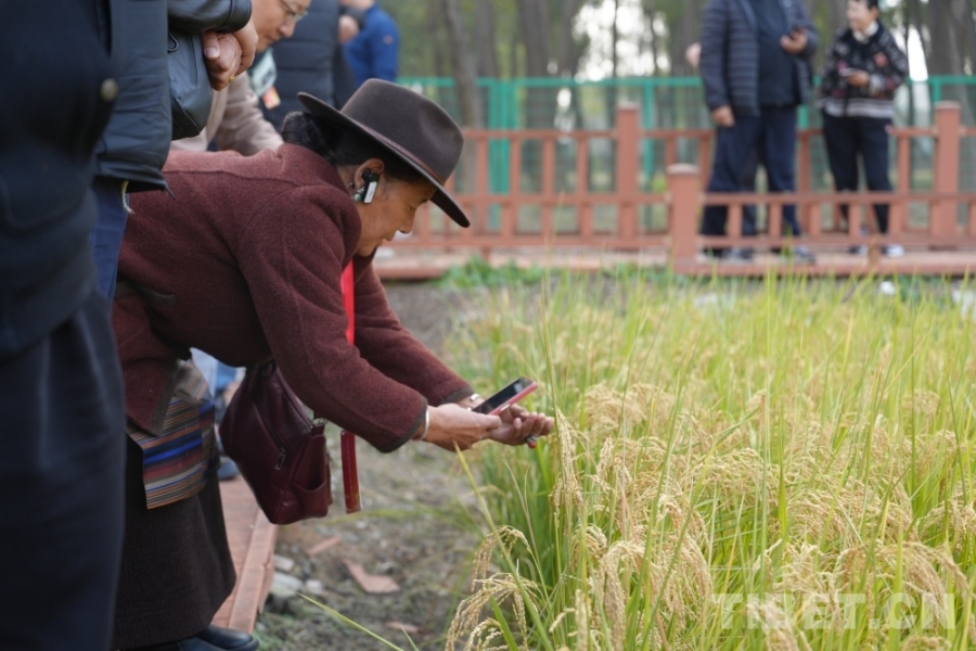 秋風(fēng)送爽,稻穗低垂,隨風(fēng)搖曳。在曾是清代皇家御田的北京市海淀區(qū)上莊鎮(zhèn)京西稻保護(hù)性種植區(qū),來自林芝市波密縣的40名基層干部沿木質(zhì)棧道近距離觀察豐收的稻田,也在文化走廊掃碼,了解京西稻的歷史脈絡(luò)與特色優(yōu)勢。
