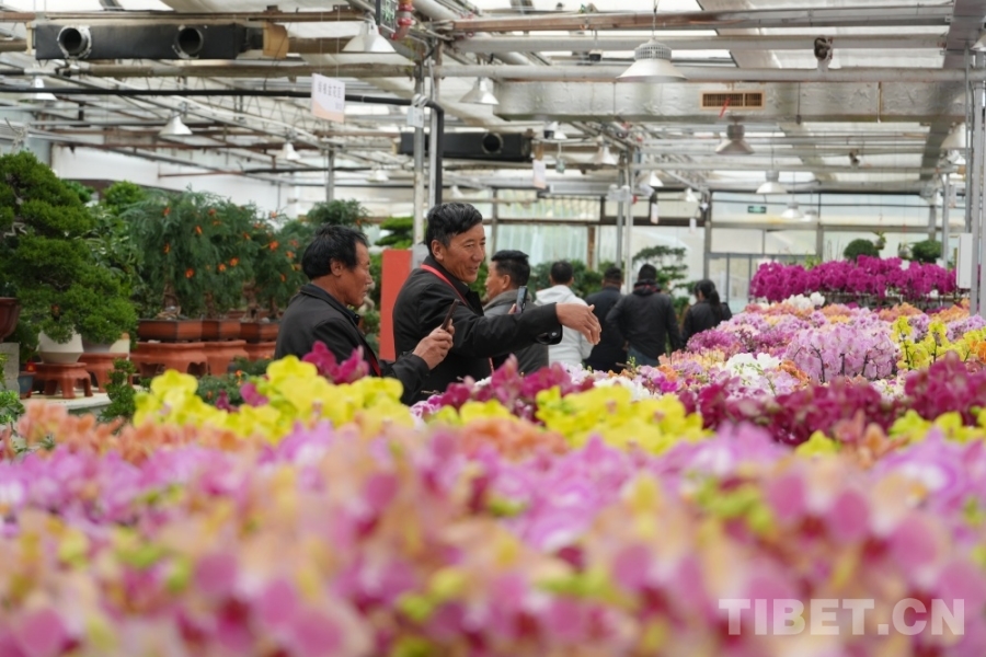 圖為西藏基層干部學(xué)習(xí)參觀團(tuán)成員參觀花卉市場 攝影:王茜