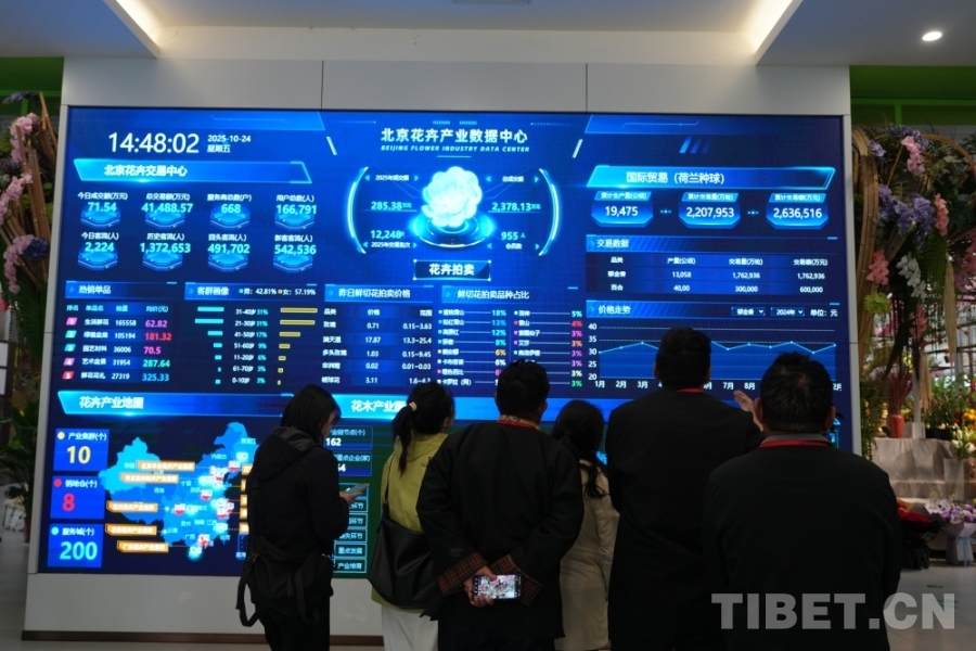 圖為西藏基層干部學(xué)習(xí)參觀團(tuán)參觀花卉產(chǎn)業(yè)數(shù)據(jù)中心 攝影:陳玲玲